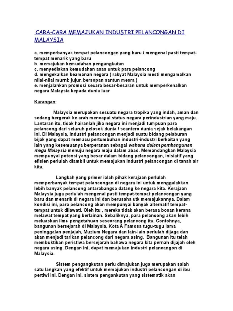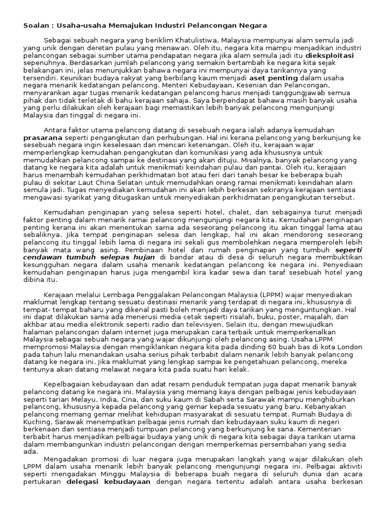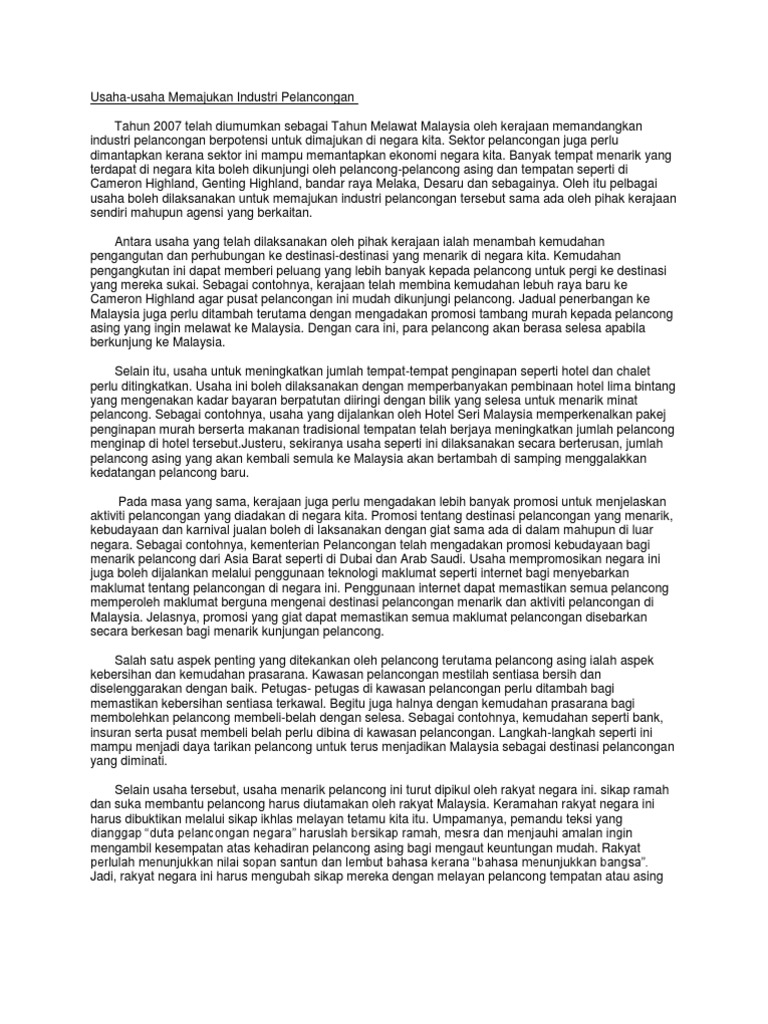 Karangan Bahasa Melayu Usaha Usaha Memajukan Industri Pelancongan Negara Pdf